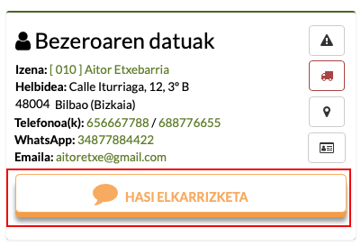 Telefonoan klik egin dezakezu deitzeko, eta WhatsApp edo emailean mezu bat bidaltzeko.