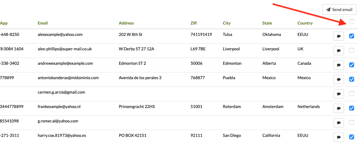 You can manually remove some to exclude them from the sending. Once all intended recipients are selected, click the button Send email