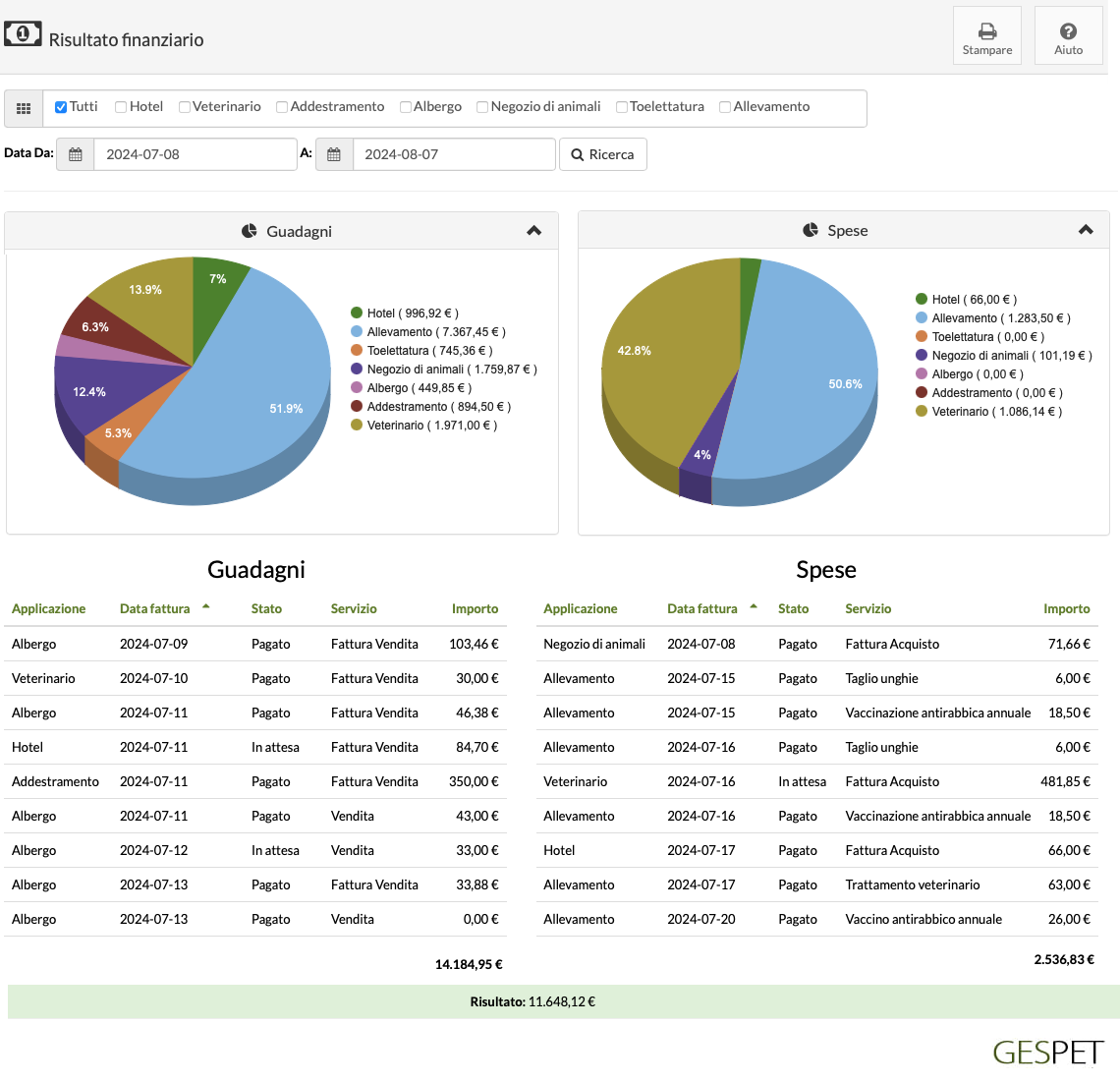 Rapporto > Risultato finanziario (o Bilancio finanziario) con entrate e uscite, anche per intervallo